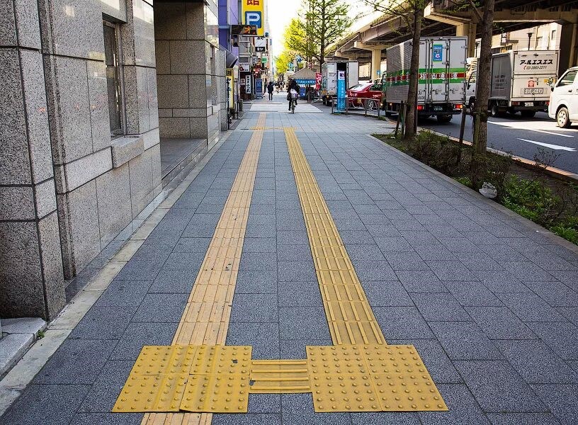 Тактильная плитка с продольными рифами 300x300x30 желтая